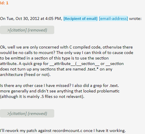 We downloaded the e-mails of the Linux Kernel Mailing List (LKML) from the mailing-list archive Gmane using the tool https://github.com/xai/nntp2mbox/, providing the list name gmane.linux.kernel.